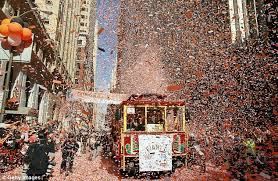 Note photographs. Facebook/Sacramento Bee, 1/6/15. Trophy held high: "Symbols of the San Francisco Giants’ three World Series championships in the last five seasons are coming to town in what has become a post-victory tradition." Twitter/torturecast., San Francisco Giants World Series Champions 2010, 2012, 2014. Daily Mail, UK, 11/4/10, Giants celebratory parade by Getty Images, and more.