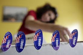 Note the cover of the CA General Election guide is from League of Women Voters' of Palo Alto, pdf pages 96. I voted buttons from KPBS/Claire Trageser, 5/18/18,"What elections have local candidates missed?"